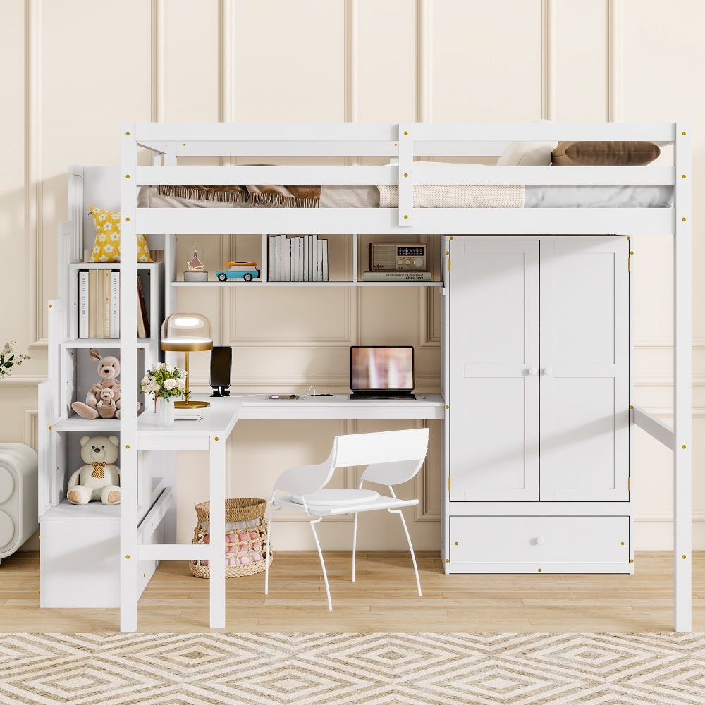 | Product Type | Loft Bed with Built-in Desk Book Shelves and Wardrobe Staircase Charging station |