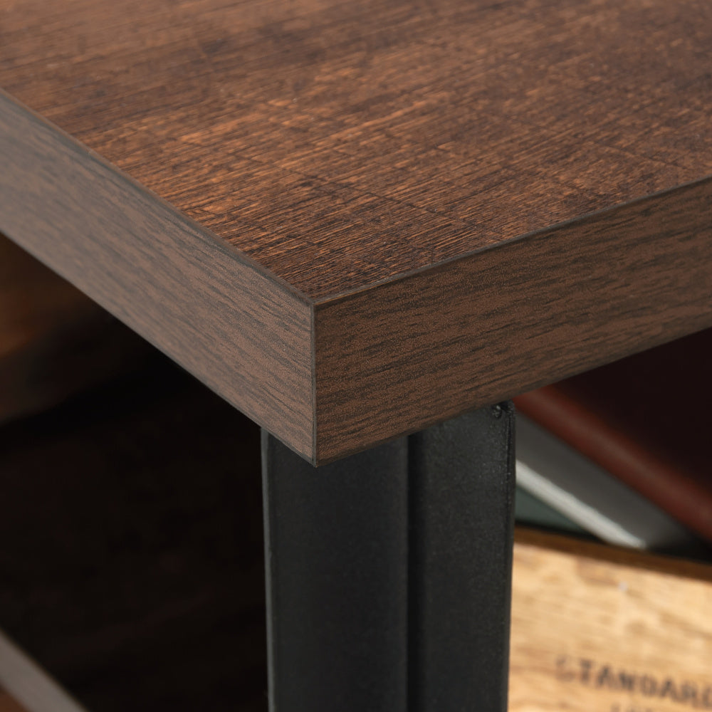 - Brown finish with metal frame for a modern rustic look
