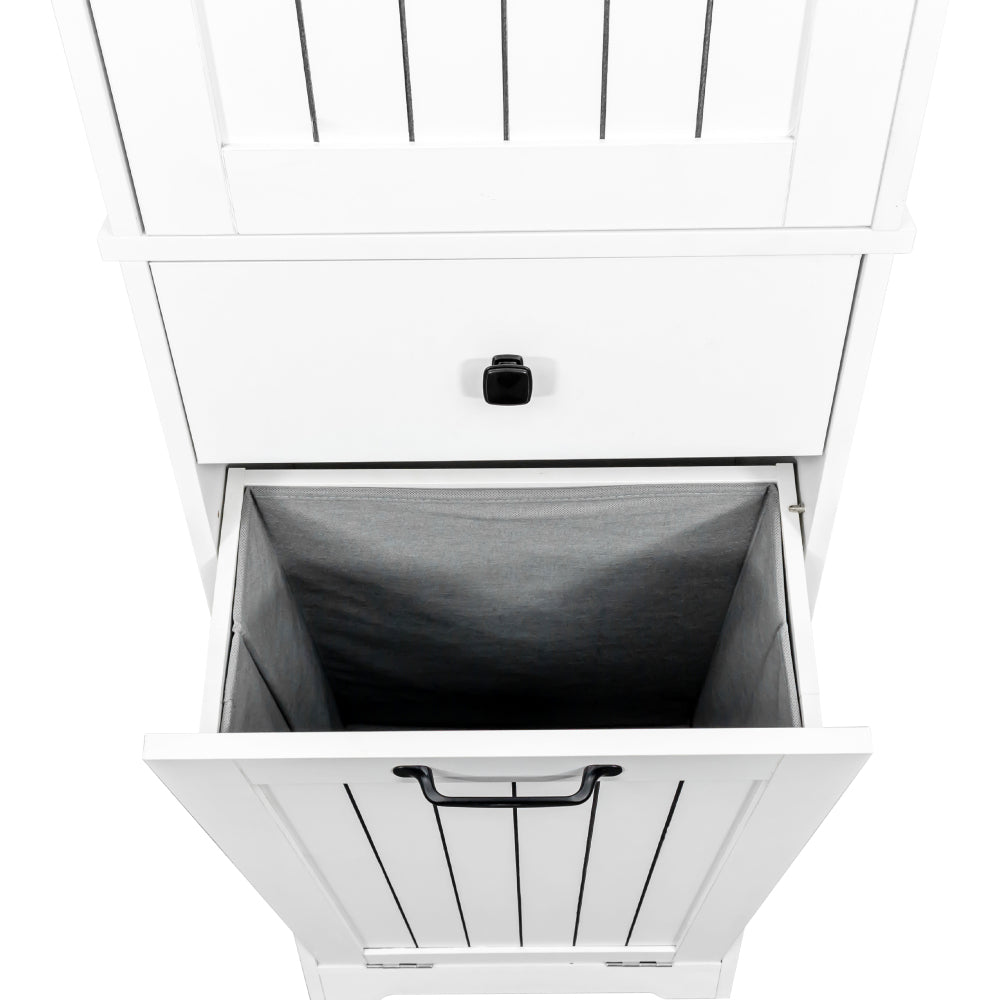- One compartment with removable cloth bags for easy separating,keep dirty laundry and towels neatly hidden away.