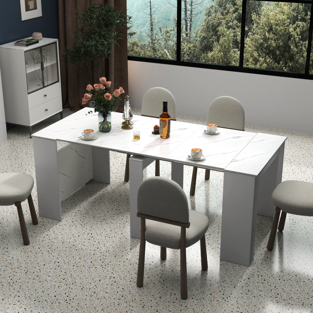 - The extensions simply slot into the convenient extension holder of the console to save unnecessary space - this mechanism makes them essential for your home and can be used as a simple desk or as a large dining table The simple lines of this product allow it to be placed in any type of environment, from the most classic