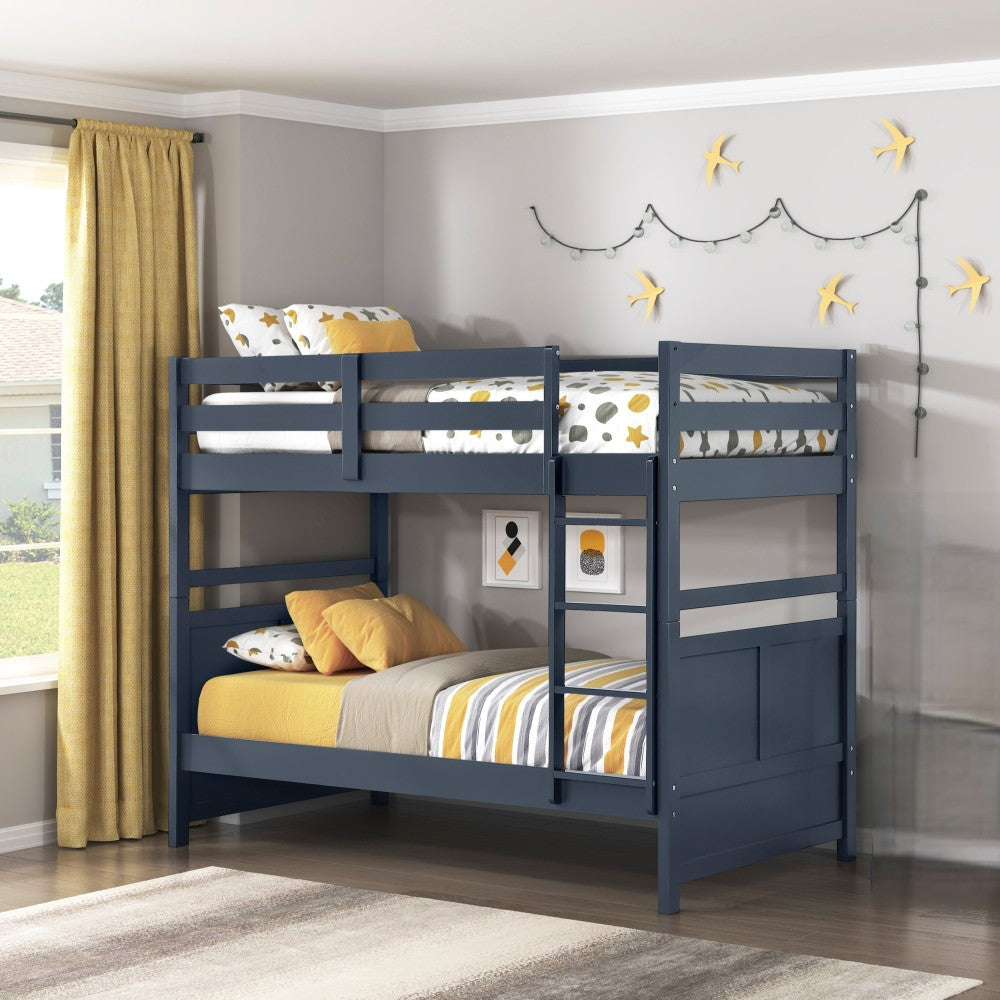 Navy Blue Finish Twin Platform Bed with Bookcase Headboard Drawers Hidden Desk Stool Footboard Storage Bench Bedroom Furniture 1pc